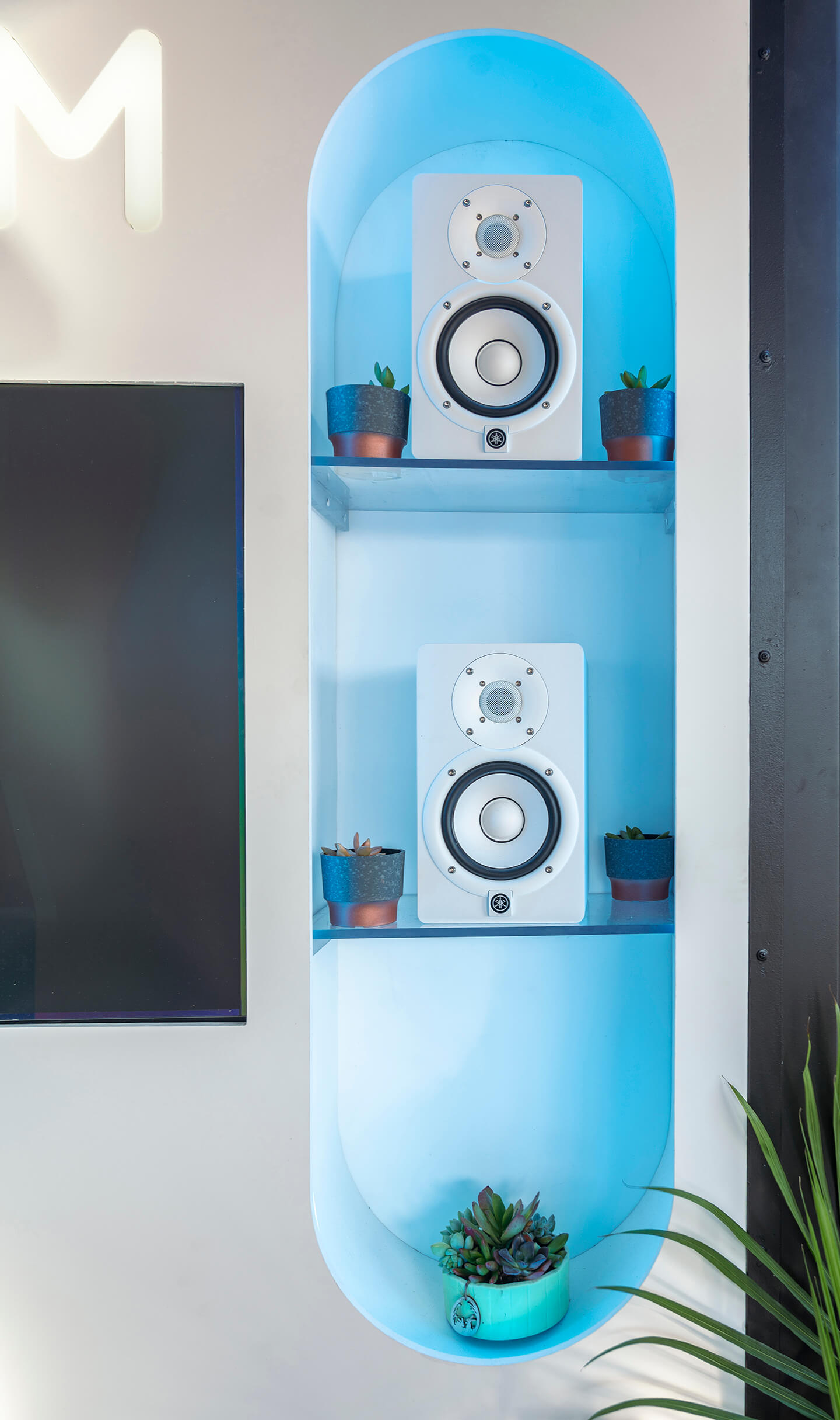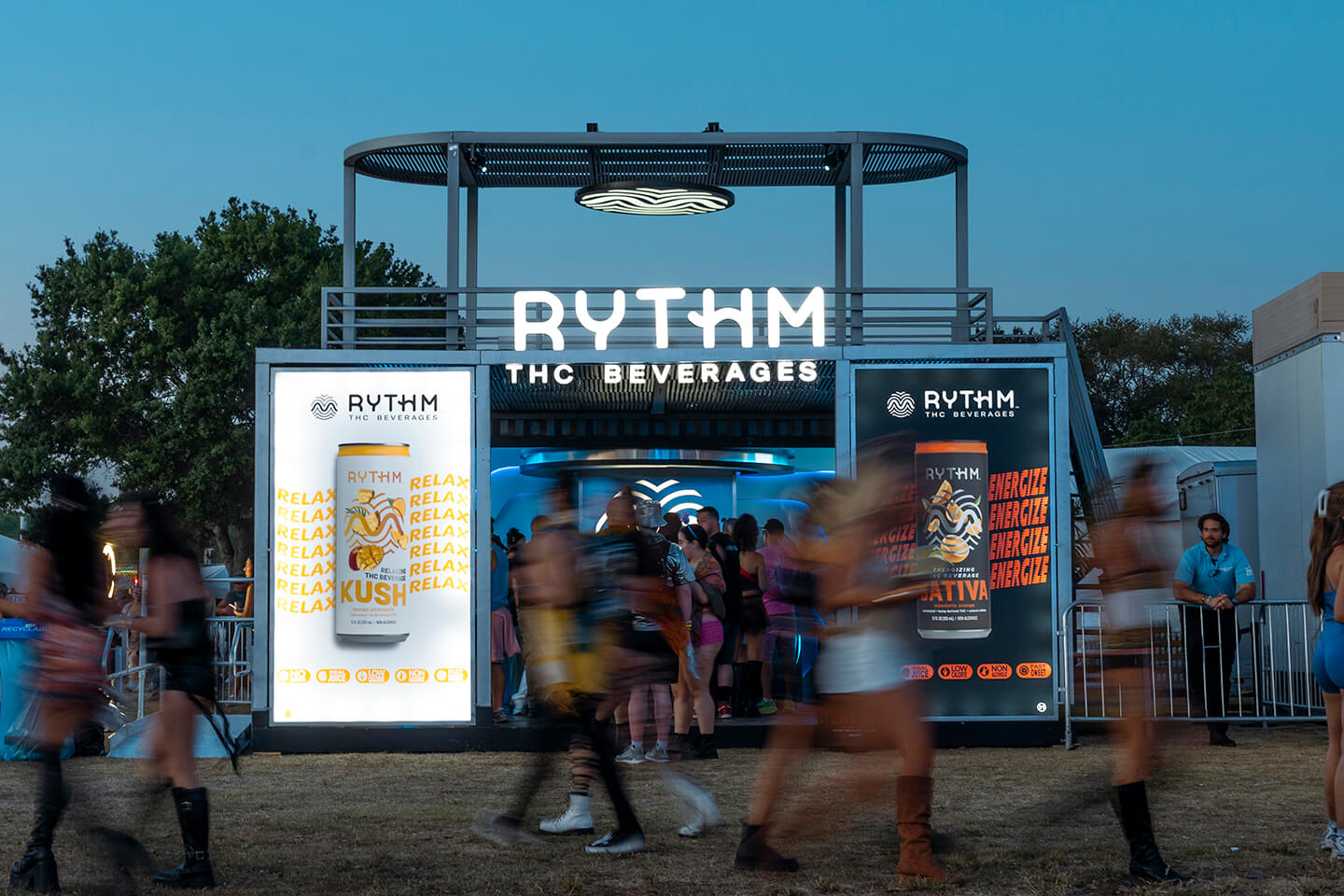 The last element is audio. Guests are handed headphones loaded with playlists curated specifically around the Rythm THC beverage experience — a final layer that ties the environment together. Every decision in the space, from the lighting sequences to the millwork, was made to feel like the brand rather than just represent it.